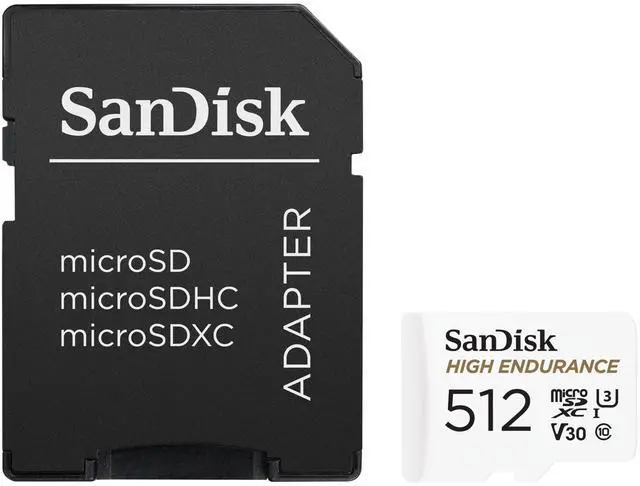 SanDisk 512GB High Endurance Video microSDXC Card with Adapter for Dash Cam and Home Monitoring Systems - C10, U3, V30, 4K UHD, Micro SD Card - SDSQQNR-512G-GN6IA