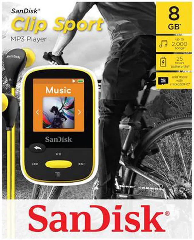 SanDisk Clip Sport 8 GB Flash MP3 Player - Yellow - FM Tuner - 1.4" - microSDHC, microSDXC - MP3, AAC, Audible, FLAC, Ogg Vorbis, WAV, WMA - 25 Hour