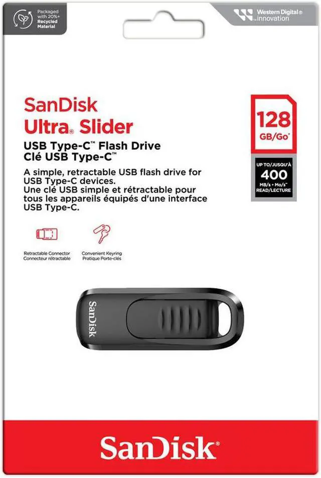 Become a master of efficient storage with the SanDisk Ultra Slider USB Type-C 3.2 Gen 1 Flash Drive. This sleek, compact device is designed with a minimalist aesthetic, yet it's built to deliver optimal performance for all your USB Type-C compatible devices. The SanDisk Ultra Slider USB Type-C Flash Drive offers rapid read speeds of up to 400MB/s for 128GB and 256GB models, making it an ideal solution for quick data access and transfer. Its durable plastic design features a smooth retracting connector, ensuring longevity and resistance to wear and tear. This USB Type-C flash drive is not just about speed and durability, it's also about convenience.