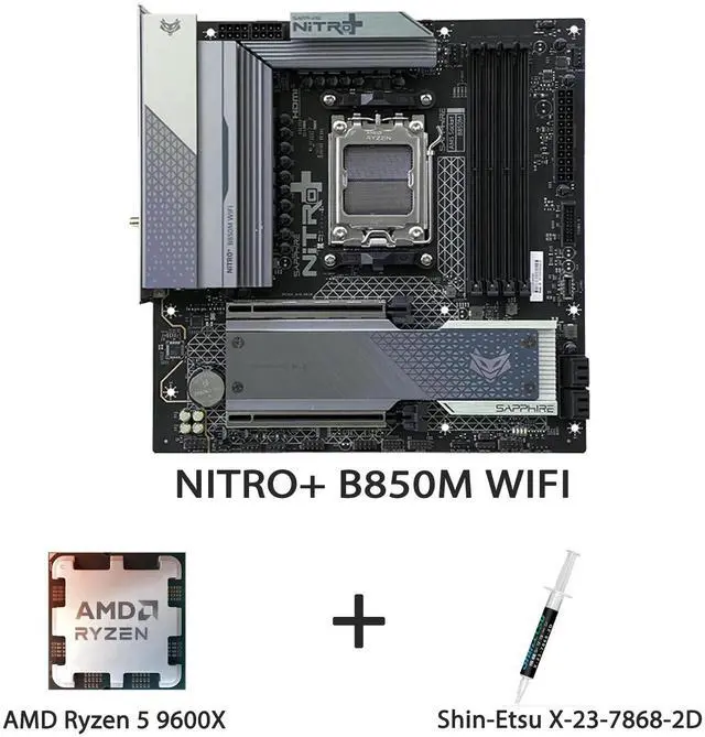 Sapphire NITRO+ B850M WIFI AM5 mATX Motherboard + AMD Ryzen 5 9600X 6-Core 12-Thread Zen5 Processor Combo