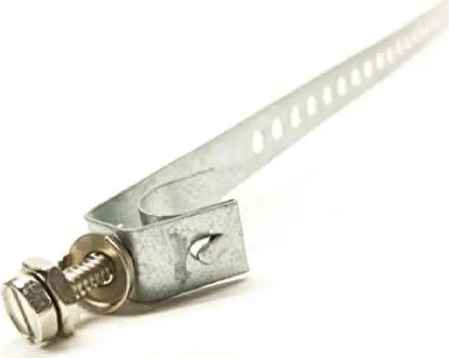 Suitable for 1/2" - 3" Diameter Pipe. Provides low resistance ground connection for grounding CATV, satellite or telephone drops. Adjustable easy install for permanent connection to water pipes or service masts to 10-14 AWG ground wire. Includes mounting screws. UL listed