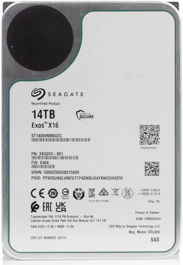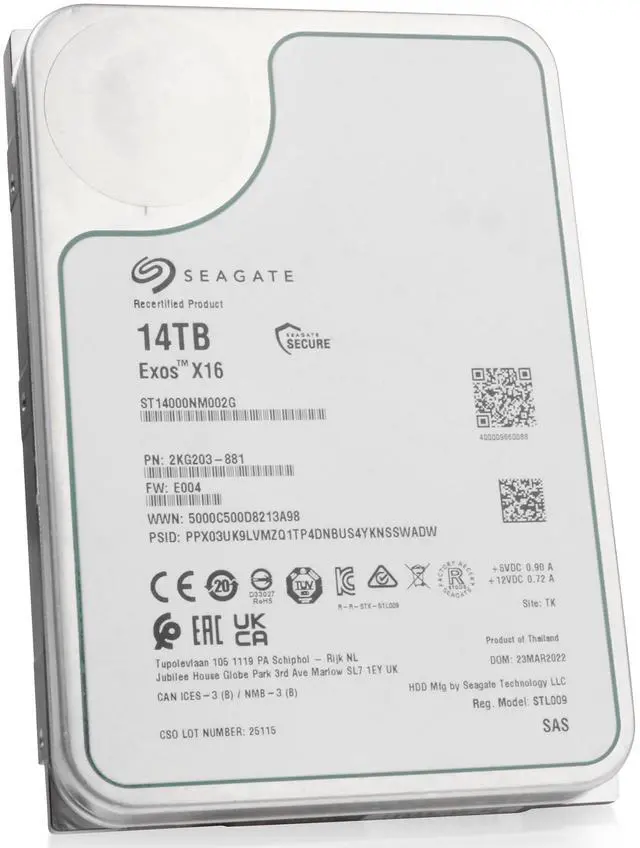 Seagate Exos X16 ST14000NM002G 14TB 7200RPM SAS 12Gb/s 3.5in Enterprise HDD