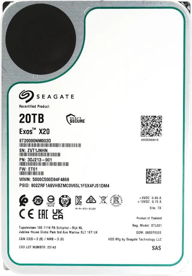 Seagate Exos X20 20TB 7.2K SAS SED 12Gb/s 3.5" Enterprise Server HDD