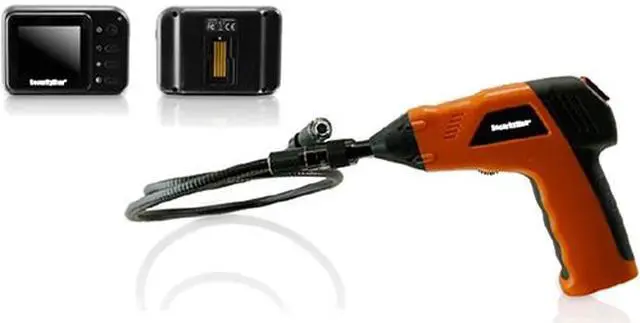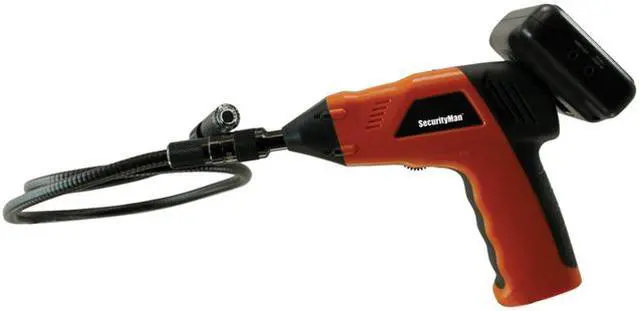 | Features | Cost-effective visual aid for hard-to-reach areas Allows inspecting, examining, or finding things via camera and attachments Waterproof (IP67) 2.4GHz mini wireless color camera with 2 LEDs and semi-flexible 3' cable Detachable and comfort handgrip with adjustable LED tuner and detachable 2.4" LCD color monitor Camera LED night vision up to 2ft 2.4GHz wireless receiver built-in LCD monitor for portability (up to 100ft indoor/150ft clear line of sight) Rechargeable Li-battery built-in the monitor last up to 5 hours One video input for optional wired camera and one video output for larger monitor display Camera uses 4 AA batteries (not included), good up to 3 hrs of continuous run-time Ideal for homeowners, mechanics, contractors, electricians, and security guards. |
