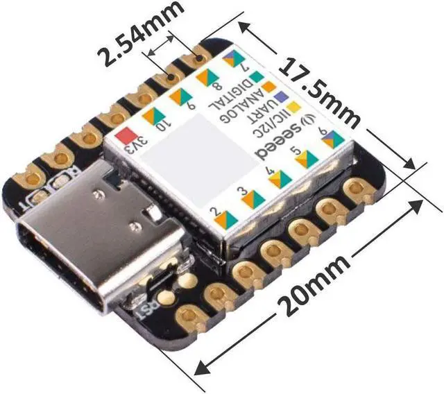 • [Rich Interfaces in a Tiny Size] There is 14 GPIO PINs, which can be used for 11 analog PINs, 11 digital PINs, 1 I2C interface, 1 UART interface, and 1 SPI interface in such a tiny size - only 20mm*17.5mm ( as small as your thumb). Seeeduino XIAO development board is the smallest Arduino compatible board in the Seeeduino series.