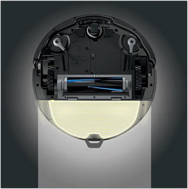 Brushes on both sides of the robot pull in debris from edges, corners, and hard-to-reach areas.