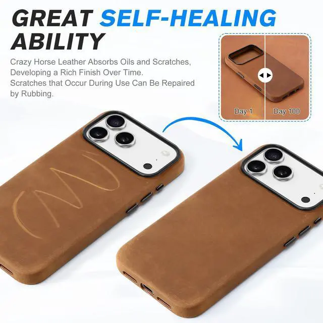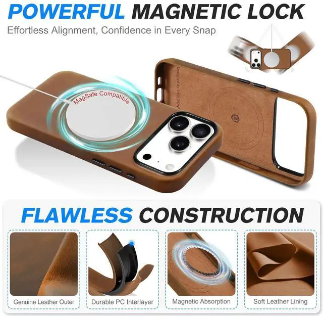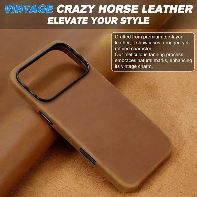 ![Alt view image 6 of 7 - Case for iPhone 17 Pro Max 6.9" 2025 | Top Grain Crazy Horse Leather, Compatible with Magsafe, [Camera Button Updated], Magnetic Wireless Charging Non-Slip Comfort Grip, Metal Buttons - Brown](https://c1.neweggimages.com/productimage/nb640/C3H5D2512290DCLNI47.jpg)