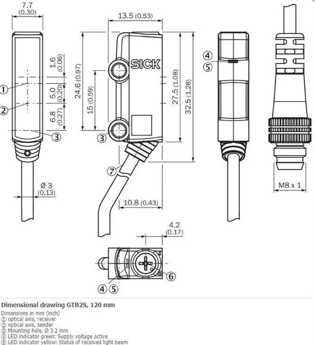 Connection type Cable, 3-wire, 2 m 6)