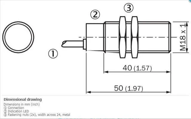 .. 55 Hz, 1 mm Ambient operating temperature –25 °C... +70 °C Housing material Metal, Nickel-plated brass Sensing face material Plastic, Plastic Housing length 50 mm Thread length 40 mm Tightening torque, max. 30 Nm