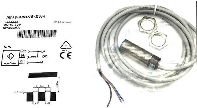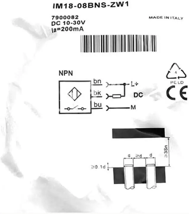 Features Housing Cylindrical thread design Housing Standard Thread size M18 x 1 Diameter Ø 18 mm Sensing range Sn 8 mm Installation type Flush Switching frequency 300 Hz Connection type Cable, 3-wire, 2 m Switching output NPN Output function NO Electrical wiring DC 3-wire Enclosure rating IP67 1) MECHANICS/ELECTRONICS Mechanics/electronics Supply voltage 10 V DC... 30 V DC Ripple = 10 % Voltage drop = 1 V 1) Current consumption 10 mA 2) Time delay before availability = 100 ms Hysteresis 2 %... 15 % Reproducibility = 5 % 3) 4) Temperature drift (of Sr) ± 10 % EMC According to EN 60947-5-2 Continuous current Ia = 400 mA Cable material PVC Conductor size 0.34 mm² Short-circuit protection? Reverse polarity protection? Power-up pulse protection? Shock and vibration resistance 30 g, 11 ms / 10.