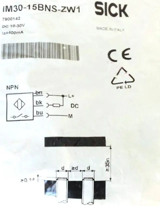 Sensing range Sn 15 mm