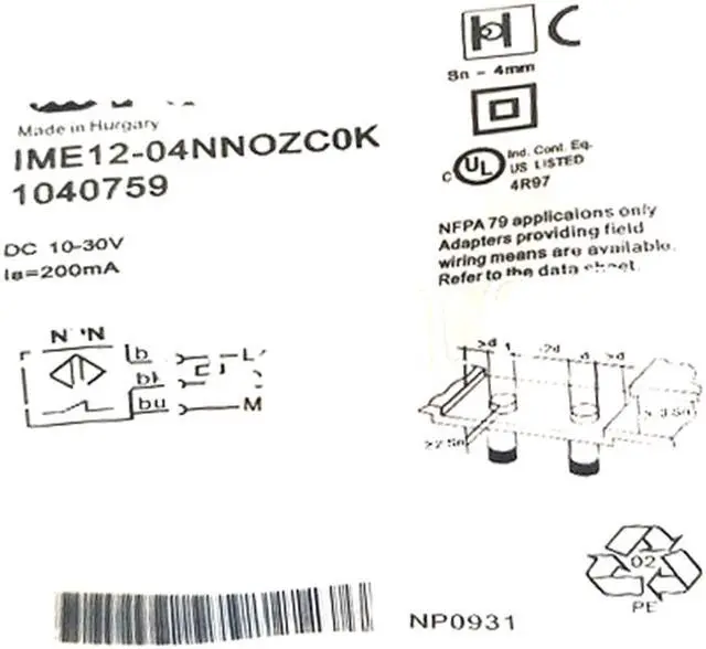 Sensing range Sn 4 mm