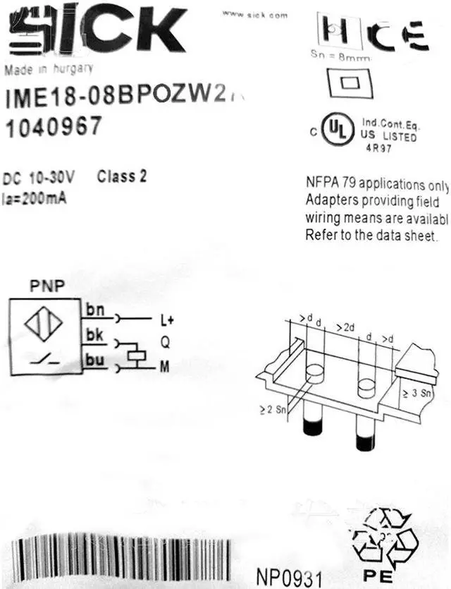 Sensing range Sn 8 mm