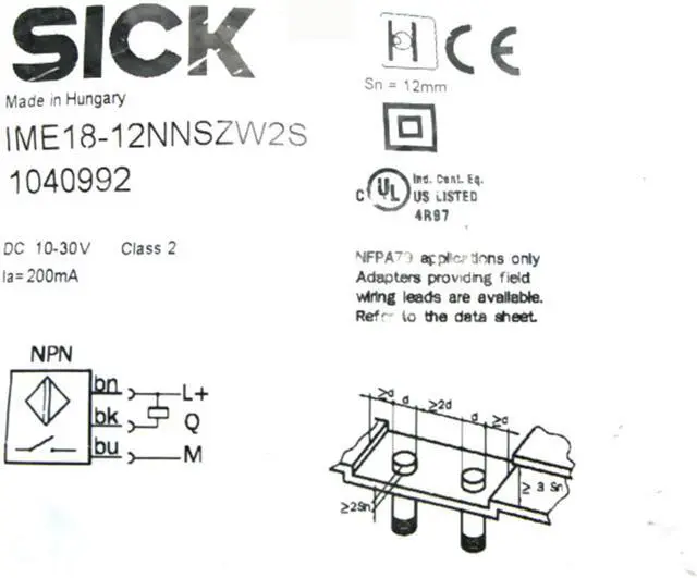 Sensing range Sn 12 mm
