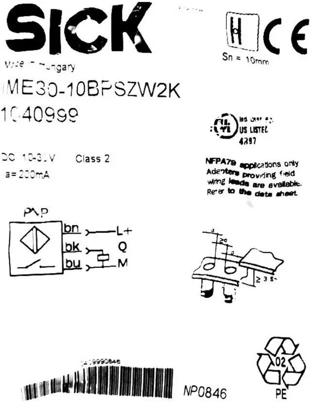 Sensing range Sn 10 mm