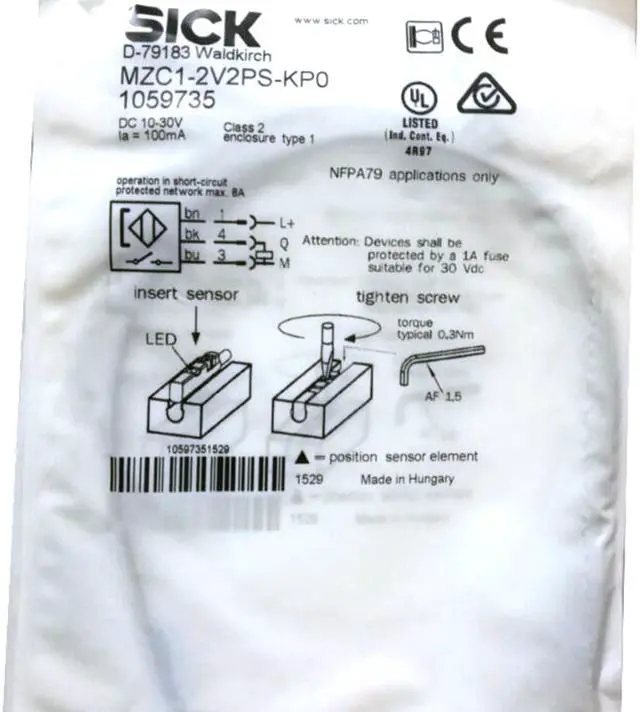 SICK MZC1-2V2PS-KP0 Sensors for C-slot Cylinders,PNP,New