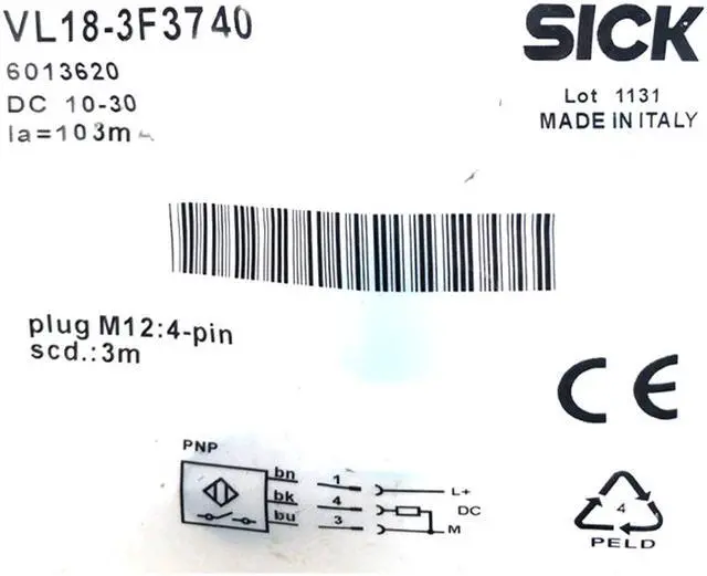 FEATURES Sensor/ detection principle Photoelectric proximity sensor, energetic Housing design (light emission) Cylindrical Housing length 78 mm Thread diameter (housing) M18 x 1 Optical axis Axial Sensing range max. 5 mm... 400 mm 1) Sensing range 5 mm... 350 mm Type of light Infrared light Light source LED 2) Light spot size (distance) Ø 20 mm (400 mm) Angle of dispersion Approx. 2.8 ° Adjustment Potentiometer, 270° (Sensing range) MECHANICS/ELECTRONICS Supply voltage 10 V DC... 30 V DC 1) Ripple = 10 % 2) Power consumption 30 mA 3) Switching output PNP Switching mode Light switching Output current Imax.