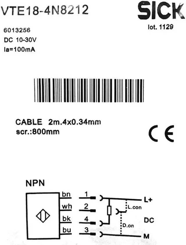 FEATURES Sensor/ detection principle Photoelectric proximity sensor, energetic Housing design (light emission) Cylindrical Housing length 63.6 mm Thread diameter (housing) M18 x 1 Optical axis Axial Sensing range max. 10 mm... 800 mm 1) Sensing range 10 mm... 700 mm Type of light Infrared light Light source LED 2) Light spot size (distance) Ø 40 mm (800 mm) Angle of dispersion Approx. 2.8 ° Adjustment Potentiometer, 270° (Sensing range) MECHANICS/ELECTRONICS Supply voltage 10 V DC... 30 V DC 1) Ripple = 10 % 2) Power consumption 30 mA 3) Switching output NPN 4) Switching mode Light/dark switching 4) Switching mode selector Selectable via L/D control cable Output current Imax.