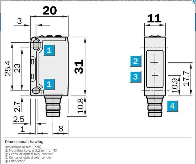 Dimensions (W x H x D) 11 mm x 31 mm x 20 mm