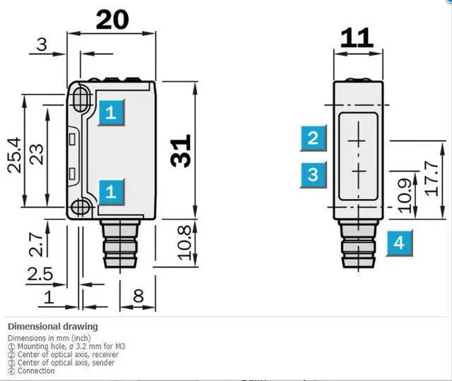 Dimensions (W x H x D) 11 mm x 31 mm x 20 mm