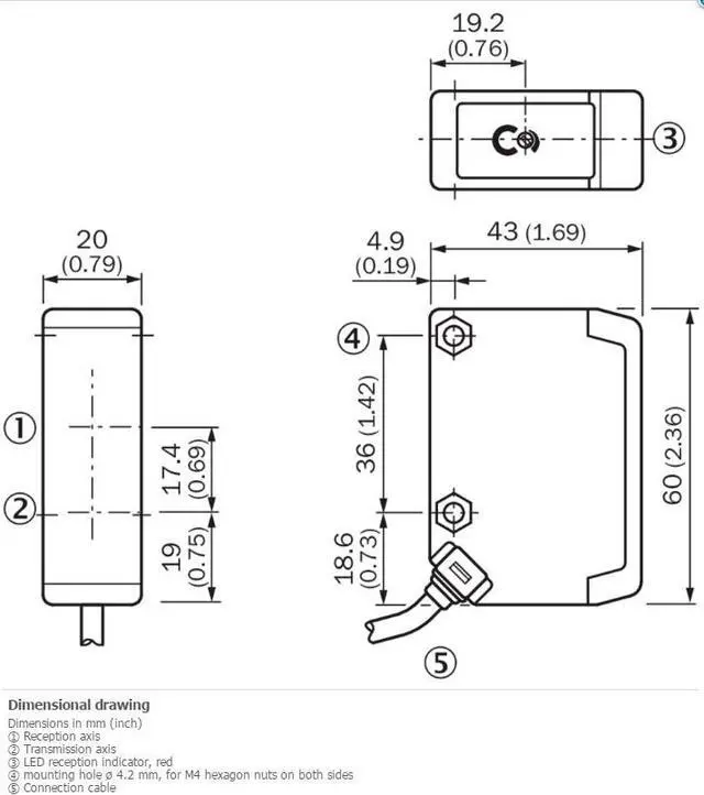 Dimensions (W x H x D) 20 mm x 60 mm x 43 mm