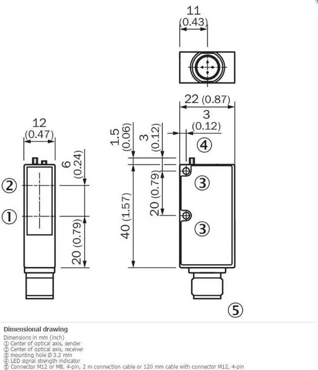 Dimensions (W x H x D) 12 mm x 40 mm x 22 mm