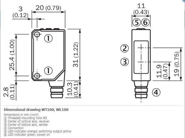 Connection type Cable, 3-wire, 2 m 6)