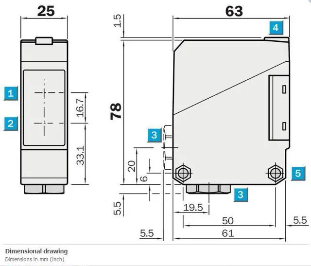 Dimensions (W x H x D) 25 mm x 78 mm x 63 mm
