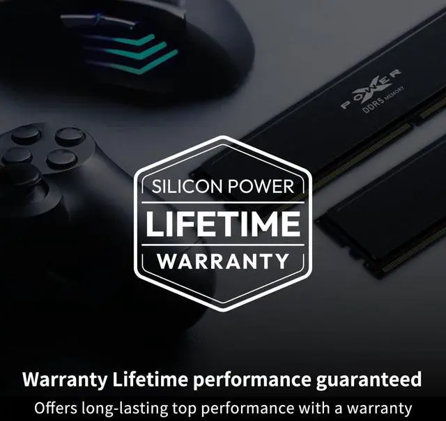 [Product Features] [DDR5 Unleashes Game-Changing Performance] Experience even faster frequencies, greater capacities, and lower voltages with the latest release in our series, the DDR5 UDIMM module. Take your gaming abilities to new heights with turbo speeds of 6000 MHz. It's available in 328GB (16GBx2) and 64GB (32GBx2) module densities with double the banks and double the burst length compared to DDR4 to give hardcore gamers and overclockers the power to harness DDR5's game-changing performance. Eliminate the competition without turning up the heat. The aluminum heatsink, available in black or white and finished with a hairline texture, promotes maximum heat dissipation and thermal management. This effect is boosted even further by a low 1.25V power consumption, an On-Die Error Correction Code (ECC), and a power management integrated circuit (PMIC) to provide reliably stable and uninterrupted gameplay at the highest resolutions while keeping its cool no matter how heated the competition gets. [Easily Overclock Like There's No Tomorrow] Do you like to pursue speed while pushing the limits? The DDR5 UDIMM module is ready and certified to support Intel XMP 3.0 and one-click overclocking technology. Experience ultra-fast overclocking at the ease of a single click with fully customized, saved profiles. Spare the hassle of making manual adjustments to BIOS settings every time and get to overclocking faster than ever before. [Play to Your Heart's Content: Lifetime Warranty] The DDR5 UDIMM compatible with Intel Core 12th Gen and above desktop CPUs and DDR5-compatible motherboards. And it is 100% factory-tested to guarantee superior quality. In fact, we are so confident that we back it with a lifetime warranty, promising complete Silicon Power technical support and services. Play to your heart's content, worry-free.