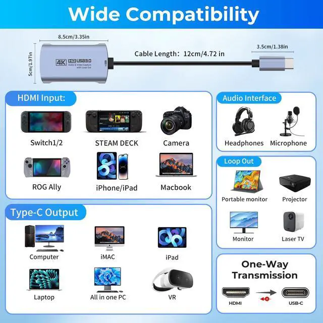 When using the loop-out function, if the image appears washed out, please turn off HDR (both input and output), then disconnect and reconnect the capture card to restore normal display. 4K capture requires high device performance. If your device has insufficient specifications, stuttering may occur