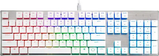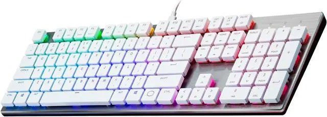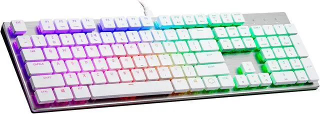 | Features | Be the envy of chiclet keyboard fanboys everywhere with the slim SK650 White Limited Edition Mechanical Keyboard. With extra-flat, contoured keycaps and new Cherry MX Low Profile switches in a slim, table-hugging design, you finally have a full-sized mechanical keyboard that doesn't stick out like a sore thumb next to your slick, all-in-one workstation. And with signature Cooler Master features on deck, you're fully equipped to crush it both at work and in-game. |