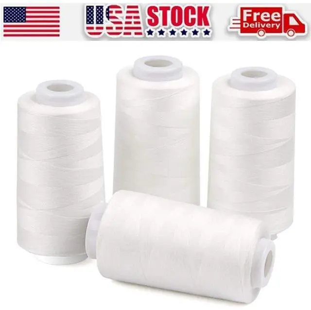 4 x 3000 Yards Serger Thread Spools White Polyester Sewing Thread Overlock Cone