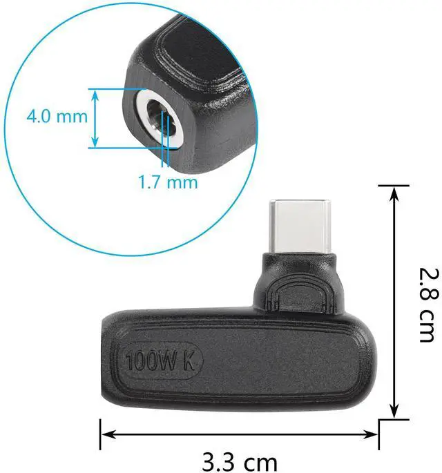 - [Convenient to Carry] DC 4.0mm x 1.7mm Female input to USB Type C male power charging adapter, travel friendly with lightweight & compact portable design that you can get rid of the heavy chargers / power bricks, and carry it in your backpack even in shirt pocket.