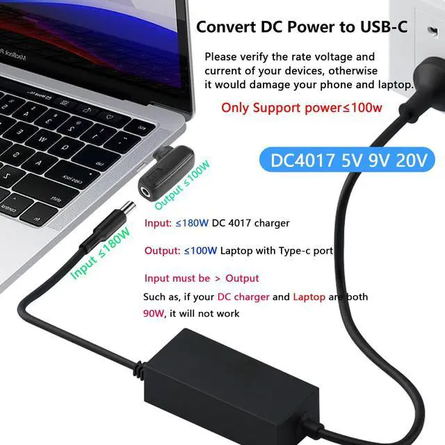 - [PD USB C Adapter]It can convert DC 4.0mm x 1.7mm PD power into a laptop with USB Type C from Type-C Charger, perfect solution to the problem that the dc power adapter cannot power the type c port. Note: DC input power must be higher than USB C output power.