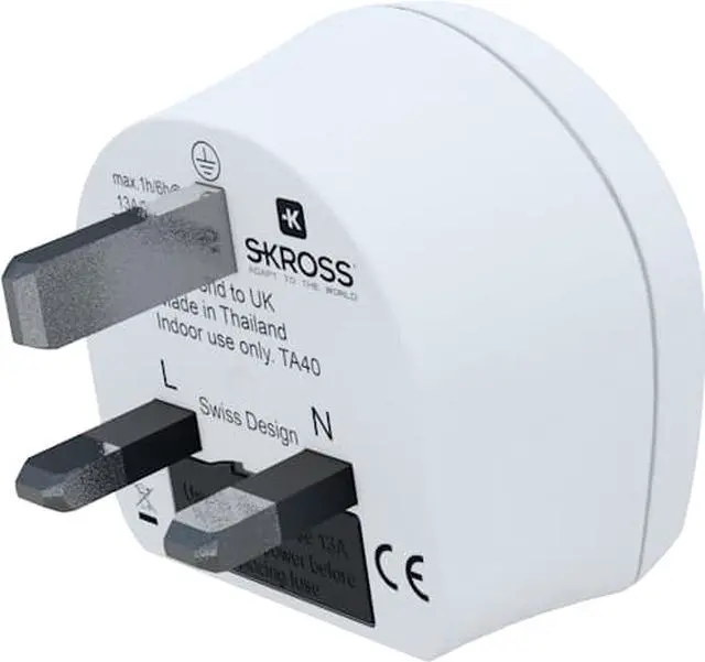 The Country Adapters from SKROSS are the ideal solution for travelers, who prefer a specific travel destination as well as for hotels and conference centers to provide their international guests the possibility of connecting their devices. With the Country Adapter World to UK devices from more than 150 countries are applicable in the UK. It safely supports even power-hungry devices like laptop and hairdryer