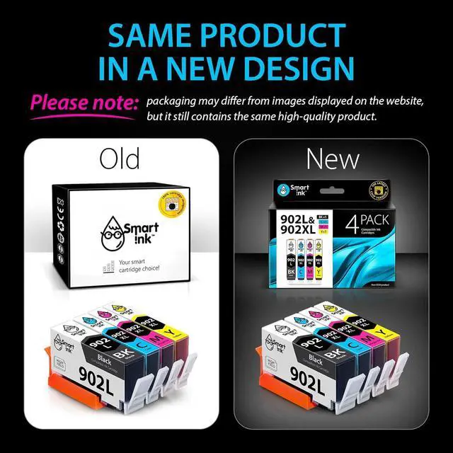 Always the Latest Chip Version: Every Smart Ink replacement for an HP ink 902 cartridge is equipped with the most up-to-date version of the chip and works well with all compatible printers, including those with the latest firmware