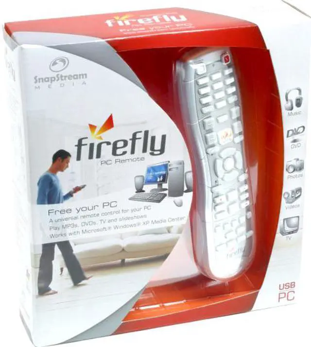 | Features | Use your computer for entertainment without touching the keyboard... The Firefly PC Remote bridges the gap between the study and the living room, giving you the power to play all your digital media from the comfort of your couch. It's sleek and sophisticated, easy to use, and the perfect addition to your digital living room. And it works seemlessly with Beyond TV and Beyond Media, making it an essential part of your media center. |