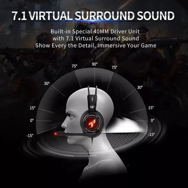 1. Free drive virtual 7.1 surround sound effect design, brings you real experience on the scene and distinguishes the direction through sound.