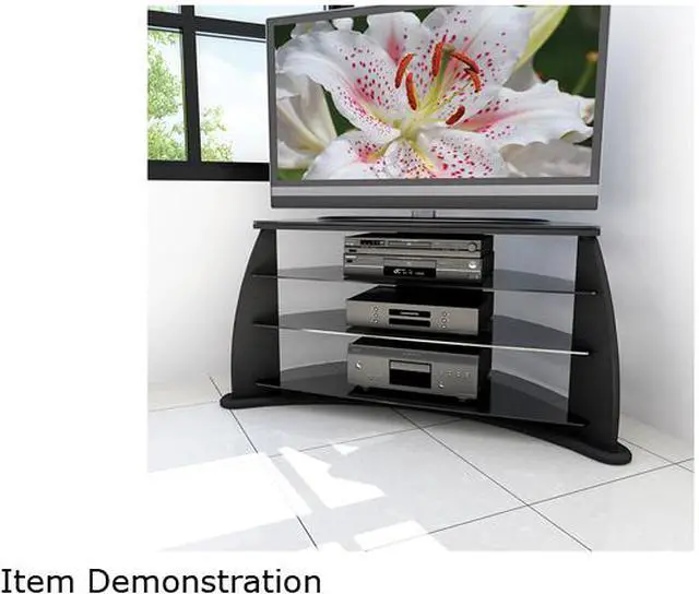 A great dwelling for your flat panel TV and accompanying components such as receiver and Blu-ray player, the Sonax Florence series TV stand blends practicality and style indispensable for a modern home theater system. Rich midnight black lacquer, tinted tempered glass top and shelves create a touch of modern aesthetics, while a cable management mechanism helps organize and hide cables for clean, clutter-free looks. With its space-saving design, this TV stand easily fits into corners as a nice focal point.