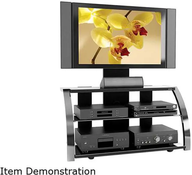 The Sonax ML-1454 features an ultramodern design with gun metal finish and hybrid design. It accommodates most 37” - 55” TVs and a TV mount is included. Its tinted tempered glass shelves offer ample storage for your components and its cable management system efficiently hides your cords and cables.
