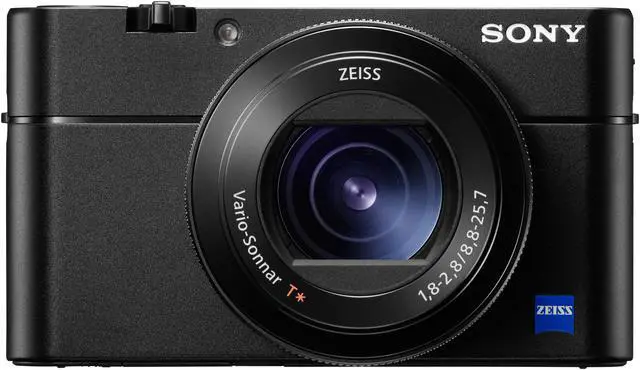 | Features | World's fastest (0.05 sec.) hybrid AF system (contrast + phase) World's most - 315 phase detection - AF points on a compact camera World's fastest continuous shooting speed1 at 24 fps w/ AF/AE tracking 20.1MP 1.00" Exmor RS stacked back illuminated CMOS sensor w/ DRAM 4K movie w/ direct pixel readout, no pixel binning and fast hybrid AF Bright F1.8- F2.8 ZEISS Vario-Sonnar T lens (24 - 70 mm) Pop-up OLED EVF w/ Live View benefits & optical viewfinder immediacy Wi-Fi / NFC / QR code for easy file transfer or remote control Super slow-motion movie HFR (High frame rate) up to 960 fps (40X) Super-speed Anti-Distortion Shutter at max. 1/32000 second up to 24 fps |