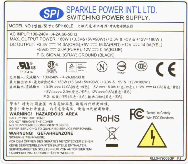 MAIN OVERVIEW FEATURES: Number of Fans: 1Input Voltage: 265 V ACOutput Voltage: 3.3 V DC,5 V DC,12 V DC,-12 V DCOutput Power: 180 WHeight: 1.6"Width: 3.2"Depth: 5.9"