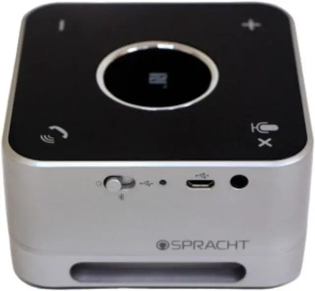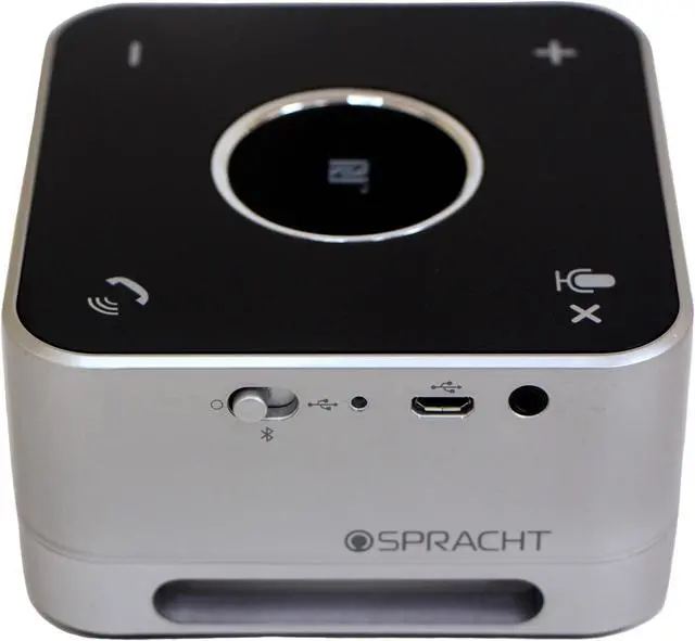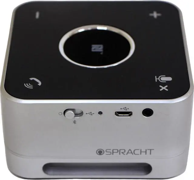 Wireless and USB conference room speaker features a compact, portable design to provide professional-quality audio wherever you are. Full duplex technology allows you to speak and hear the other party at the same time for more dynamic conversations. Digital Sound Processing cancels ambient noise around you and suppresses echoes to ensure your voice is heard. Omnidirectional microphone captures audio from any direction to allow calls with multiple people. Its passive bass radiator produces a realistic, deep bass and rich sound so you can stream music when you're not on a call. Near Field Communications (NFC) chip lets you simply touch your NFC capable device to the speaker to connect automatically.