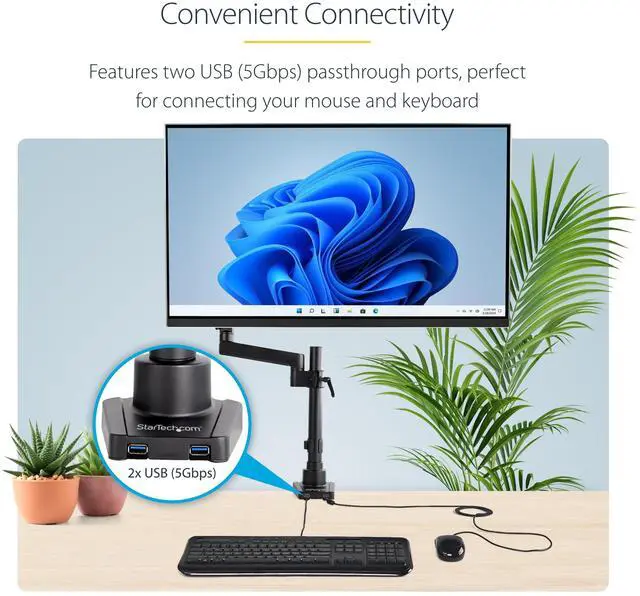 Sleek and Stable DesignMade of aluminum, the VESA mount monitor stand provides stable support for your display, with a weight capacity of up to 17.6 lb. (8 kg). Built-in USB 3.0 ports provide convenient connectivity for your computer.