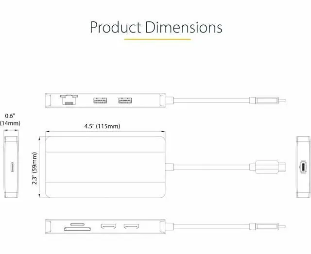 | Features | 8-IN-1 MULTIPORT ADAPTER: USB-C dock features DP 1.4 Alt Mode w/DSC & MST supporting up to Dual 4K 60Hz (4K 30Hz w/DP1.2) HDMI 2.0b HDR; 2-port USB-A 3.2/3.1 Gen1 5Gbps hub; 1x BC 1.2/7.5W Fast Charge; 100W PD Passthrough, SD/MicroSD reader, GbE