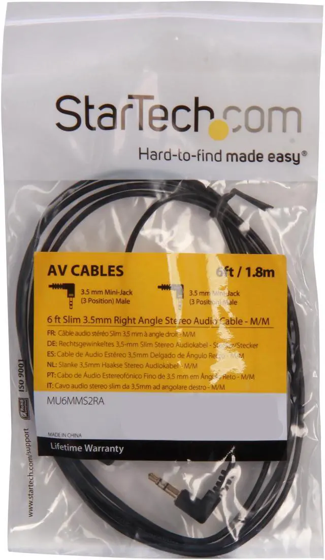This 6-foot Slim 3.5mm Right Angle to Right Angle Stereo Audio Cable is the perfect solution for portable audio devices (iPod, iPhone,iPad, MP3 Players), featuring a slim connector molding that fits easily into a 3.5mm headphone jack, even if the device is in a protective case.