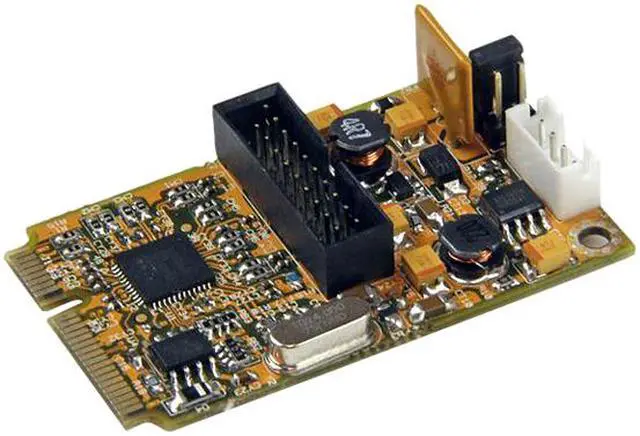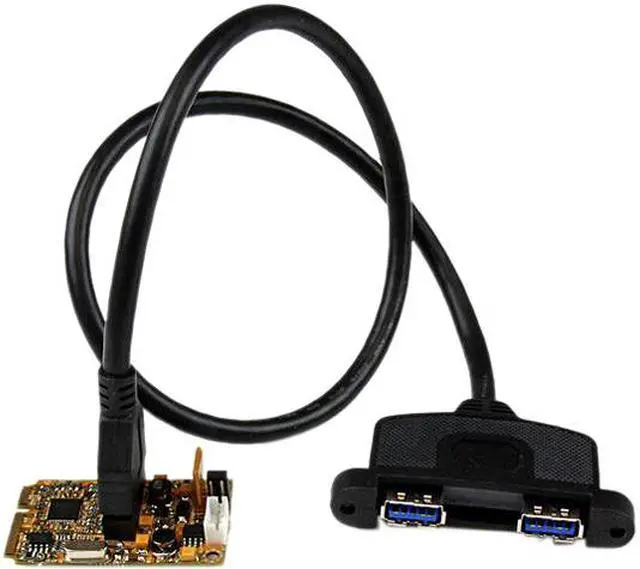 Bus Type: Mini PCI Express Cable Length: 600 mm [23.6 in] Card Type: Embedded Chipset ID: Renesas - uPD720202 Connector Type(s): Mini PCI Express x1 (52 pin) Male External Ports: USB 3.0 A (9 pin ; SuperSpeed) Female Humidity: 5~95% RH Included in Package: Driver CD Instruction Manual Low Profile Bracket LP4 Power Cable Mini PCIe USB 3.0 Card Screw Kit Standard Profile Bracket USB Header to 2 Port Cable Industry Standards: Intel xHCI PCI Express Base Specification 2.0 (backward compatible with 1.0a/1.1) USB 3.0 Interface: USB 3.0 Internal Ports: IDC (20 pin ; USB 3.0 ; Motherboard Header) Male ; SP4 (4 pin ; Small Drive Power) Male Maximum Data Transfer Rate: 5 Gbps Operating Temperature: 0°C to 55°C (32°F to 131°F) OS Compatibility: Windows® 8 / 8.1 (32/64), 7 (32/64), Vista (32/64), XP (32/64) Windows Server® 2012, 2008 R2, 2003 Ports: 2 Product Length: 51 mm [2 in] Product Weight: 61 g [2.2 oz] Product Width: 30 mm [1.2 in] Shipping (Package) Weight: 207 g [7.3 oz] Storage Temperature: -20°C to 85°C (-4°F to 185°F) System and Cable Requirements: Available Mini PCI Express expansion slot (full length) Case/Chassis with available Low or Full profile expansion card slot Type and Rate: USB 3.0 - 5 Gbit/s UASP Support: Yes