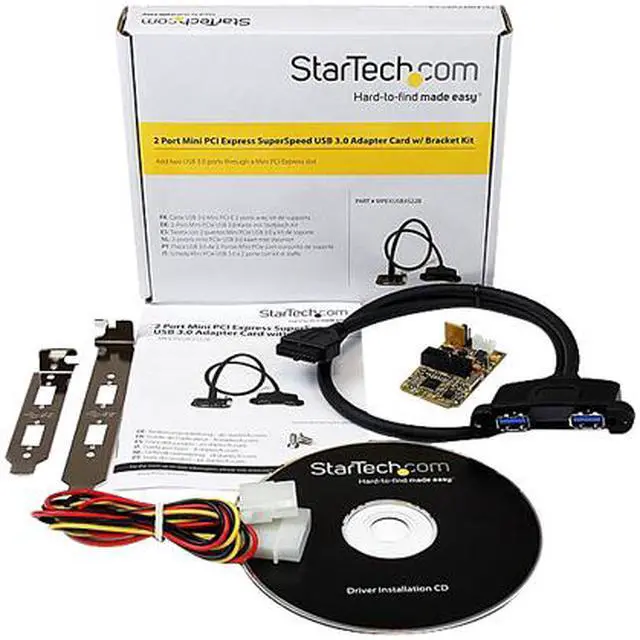 1 x Mini PCIe USB 3.0 Card 1 x USB Header to 2 Port Cable 1 x Low Profile Bracket 1 x Standard Profile Bracket 1 x LP4 Power Cable 1 x Screw Kit 1 x Driver CD 1 x Instruction Manual