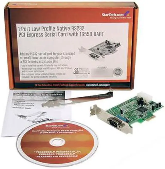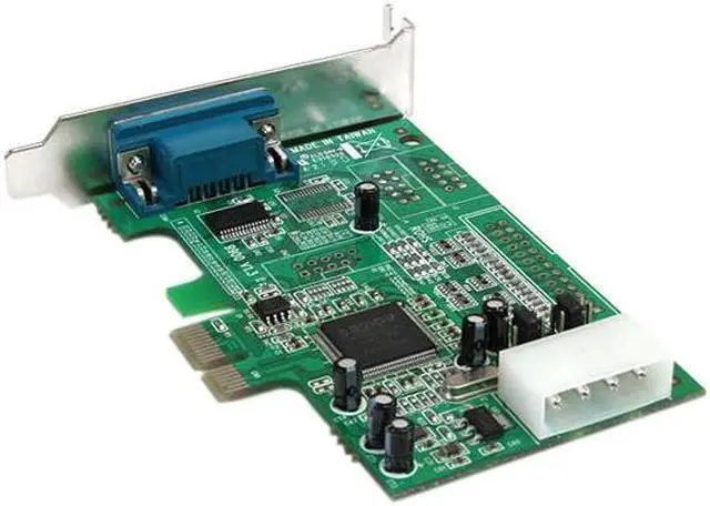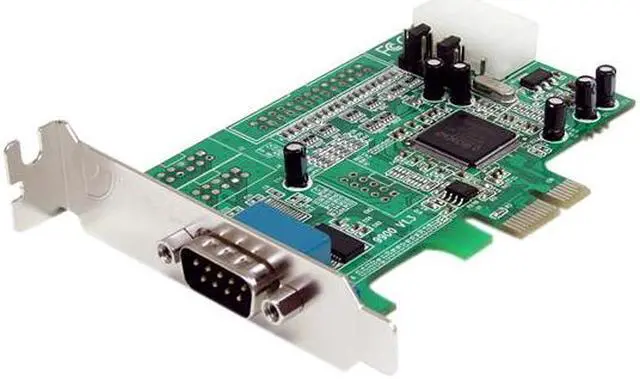 One high speed RS232 serial port with data transfer rate up to 460.8 Kbps Ships with half-height/low profile mounting bracket, includes standard bracket Selectable power output on pin 9 for the serial port Native single-chip, single lane PCI Express Single chip design optimizes speed and reliability Compliant with PCI Express base specifications revision 1.1a Automated out-of-band flow control using CTS/RTS and DSR/DTR Automated in-band software flow control using programmable Xon/Xoff in both directions 128-byte deep FIFO per transmitter and receiver