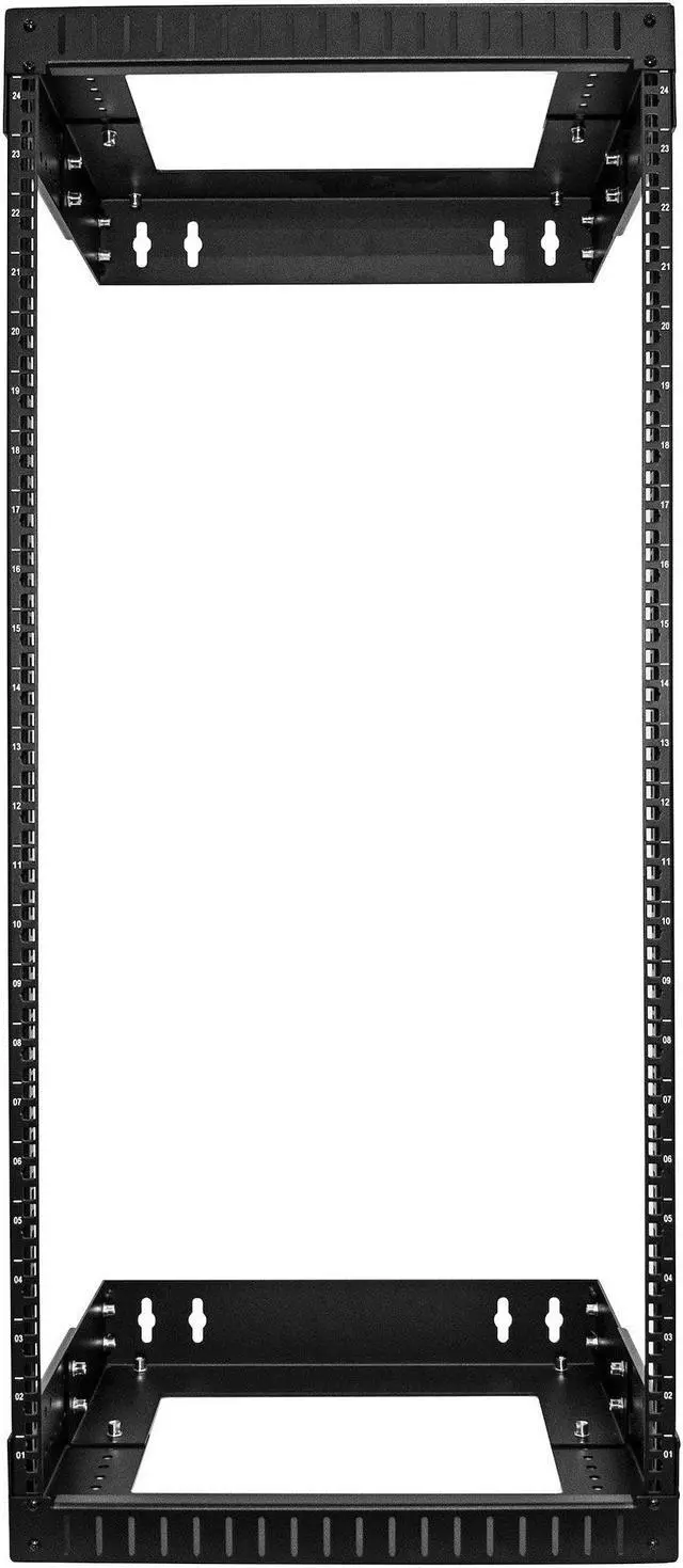 ADJUSTABLE DEPTH: This 2-post 24U 19 inch open frame rack is EIA/ECA-310 compliant, and with an adjustable mounting depth ranging from 12 - 20 inches, is ideal for network switches, servers, patch panels, and PDUs.